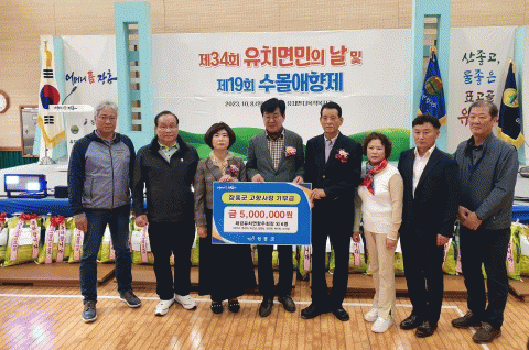 또한 면민의 날을 기념하여 장한어머니상, 장수상 시상과 장학금, 감사패 수여, 기탁식을 진행했다. 재경향우회 김덕근 회장님을 비롯 문강자, 마선남, 임춘심, 장진권, 백기학, 이기정 님이 고향을 응원하는 마음을 담아 고향사랑기부금 500만 원을 전달하여 면민의 날을 더욱 뜻깊게 만들었다.
