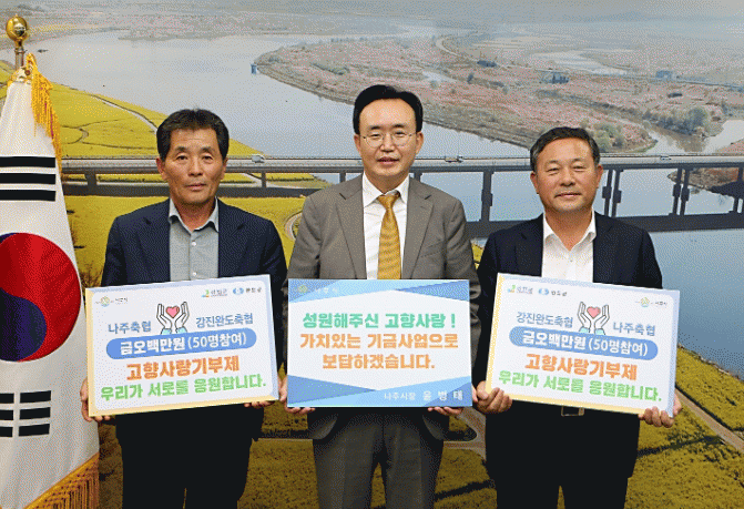윤병태 나주시장은 “고향사랑기부를 통해 좋은 인연을 맺게 됐다. 이번 상호 기탁을 계기로 지역 간 교류와 상생이 지속되길 바란다”라며 기탁식을 축하했다.