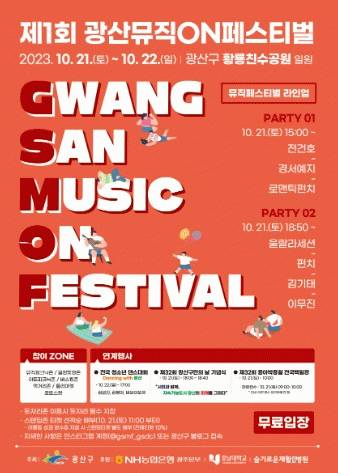 우선 ‘생동감 있는 도시, 지속가능한 광산’을 대표할 축제 제1회 ‘광산뮤직온(ON)페스티벌’이 21일부터 22일까지 이틀간 황룡친수공원에서 열린다.
