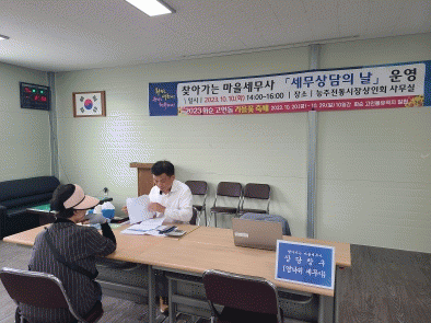이번에는 화순군 서부권역 주민들을 위하여 능주면 소재 전통시장에서 염낙귀 세무사와 함께 세무 고충 상담을 진행하여 좋은 반응을 이끌었다.