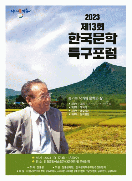 우리 고장 장흥이 자랑하는 작가 중 한 분인 송기숙 선생이 작고 한 지 벌써 2주년이 됐기 때문으로 이번 포럼은 송기숙 선생을 추모하는 정을 담아 선생의 문학정신과 민주화를 위해 헌신하신 선생의 삶을 되돌아보고자 하는 행사로 만련한 것이다.