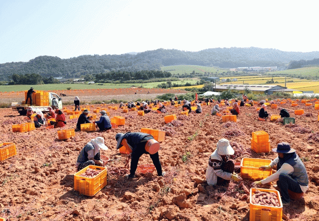 푸른 이파리와 줄기가 걷힌 붉은 황토밭을 헤치자 속이 노란 영암 황토고구마가 주렁주렁 딸려 나온다. 영암 붉은 황토의 풍부한 미생물과 효소들은 고구마를 더 노랗고 더 달고 더 알차게 해 겨우내 사람들의 입맛을 달콤함으로 채운다.