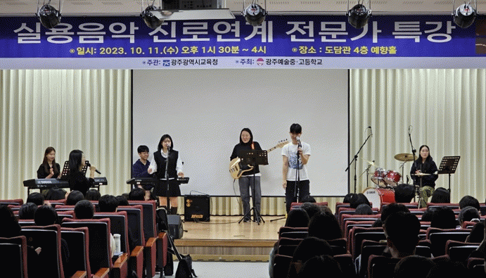 12일 시교육청에 따르면 이번 특강은 최근 실용음악 분야의 진로를 희망하고 준비하는 학생들이 늘어남에 따라 이들의 진로상담 및 설계를 위해 마련됐다. 특히 실용음악을 목표로 대입을 준비 중인 ‘일반고 학생’들과 관심은 있으나 아직 이를 진로로 결정하지 못한 학생들에 도움을 주는 데도 목적을 뒀다.