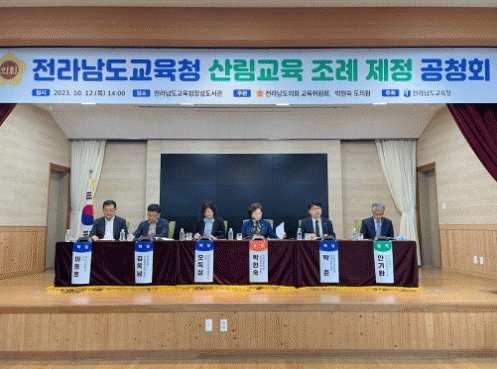 공청회 좌장은 박현숙 의원이 맡았고, 발제자는 전남대학교 안기완 교수가, 토론자로는 전라남도교육청 박준 과장, 전라남도산림자원연구소 오득실 소장, 전라남도 산림휴양과 김옥남 팀장, 예당고등학교 이동호 교감이 참여했다.