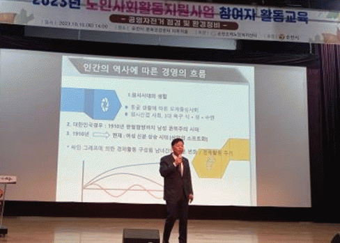순천조례노인복지센터(센터장 신애란)가 주관한 이날 특강은 노인사회활동 지원사업에 참여 중인 150여 명의 주민이 참석한 가운데 진행됐다.