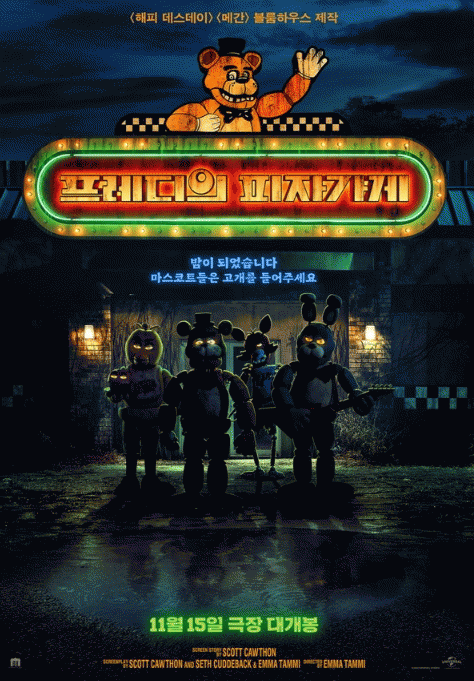 블룸하우스의 서바이벌 호러테이닝 무비 '프레디의 피자가게'는 11월 15일 국내 개봉 예정이다.