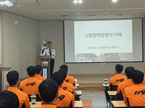 이날 특강에서 홍영근 본부장은 국민중심의 소방안전문화 창출, 특수시책 활성화, 최고 수준의 소방안전서비스 제공 등 전남소방이 가야 할 비전을 제시했다.