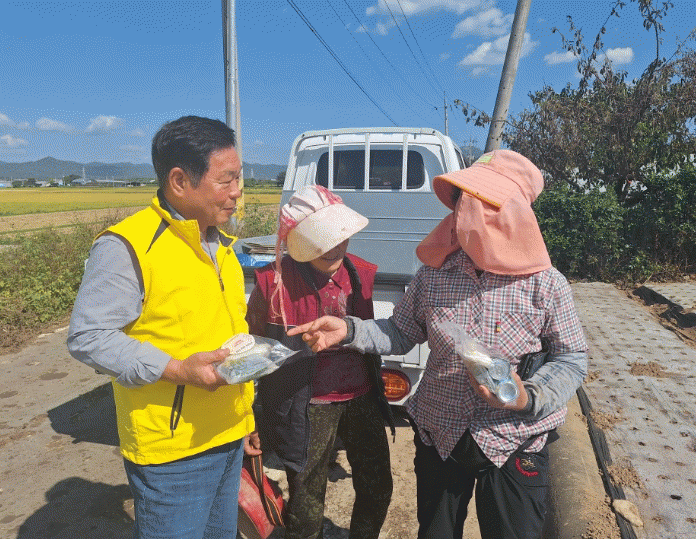 수확기 바쁜 영농활동을 이어가며 구슬땀을 흘리는 과정 중에 새참을 전달받은 한 농업인은 “힘든 농사철에 따뜻한 새참을 받으니 힘이 난다”며 감사의 마음을 전했다.