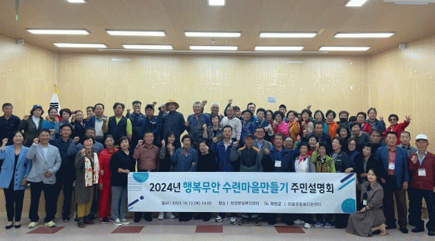 행복무안 수련마을만들기 사업은 주민회의를 통해 결정돼 2024년 12월까지 소공원, 꽃길 가꾸기, 공터정비 등 마을 관련 사업에 투입될 예정이며, 차후년도 자율개발 마을만들기 사업(총 5억 원)을 추진할 수 있는 자격을 부여받게 된다.