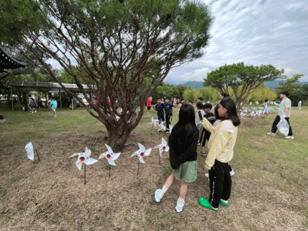 학생들은 직접 만든 280개의 바람개비를 현충공원에 꽂아 유가족과 공원을 이용하는 주민들이 볼 수 있게 태극기 바람개비 동산을 조성했다.