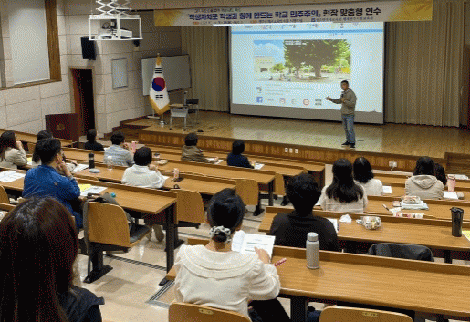 16일 시교육청에 따르면 이번 연수는 학교 현장에서 적용할 수 있는 사례 중심으로 이뤄졌다. ‘글똥누기’, ‘초등자치’ 등 저자로 활동 중인 경기석호초등학교 이영근 교사의 학생 자치 사례에 대한 강의를 중심으로 교사와 학생이 만들어 가는 교실·학생 문화 변화, 실제 학생자치 사례 등에 대한 경험 공유가 있었다.