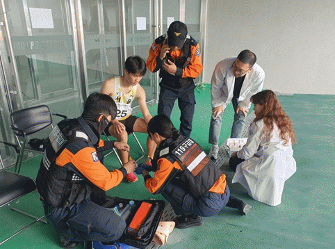 119구급대는 도내 70개 경기장에 배치됐으며 소방본부 구급지휘대는 다수사상자 발생 시 신속한 임시의료소 운영을 위해 상시 출동 대기 중이다.