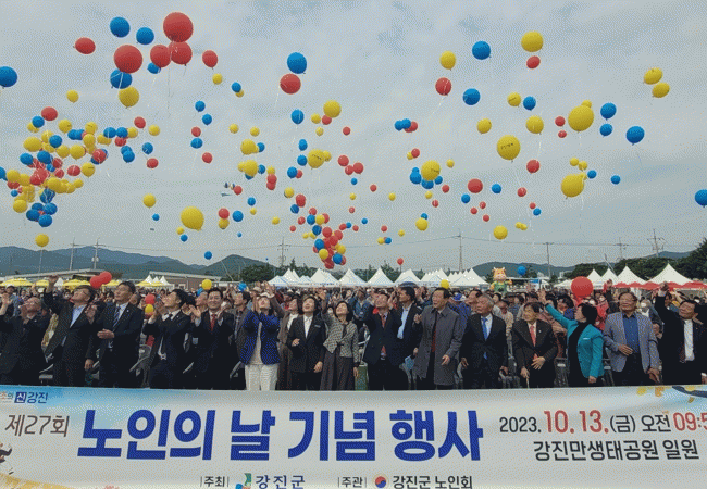 강진원 강진군수는 축사를 통해 “강진 발전의 오늘이 있기까지는 이 자리에 참석하신 어르신의 노고가 있었기 때문”이라며 “응급안전안심서비스를 군단위 최초 시행 및 최고 수준, 경로당 개·보수 및 소파, 식탁 등 지원 확대, 내년 노인일자리 확대 등 노인복지증진 관련 예산을 지속적으로 확대하고 있다”고 말했다.