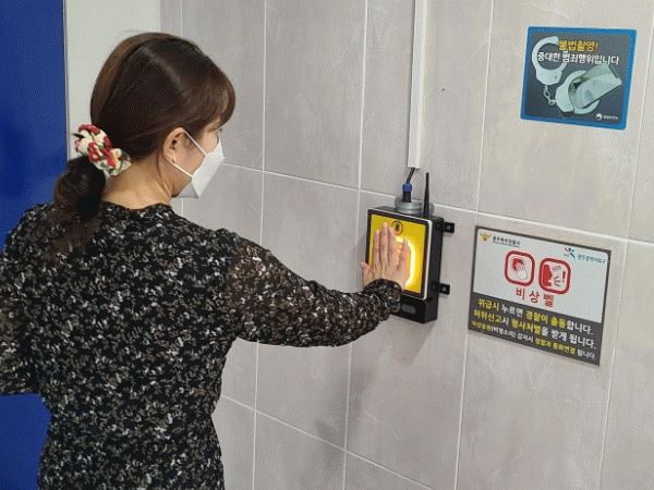 광주지역 공중화장실에는 안심비상벨이 설치돼 112상황실로 위치정보를 실시간으로 전달, 관할 경찰서에서 긴급출동 대응할 수 있다. 화장실에서 안심비상벨을 누를 경우 문밖에 설치된 경광등에 불이 들어오고 사이렌 경보가 울려 주변에 긴급상황을 전달할 수 있도록 해 범죄를 예방하고 있다.