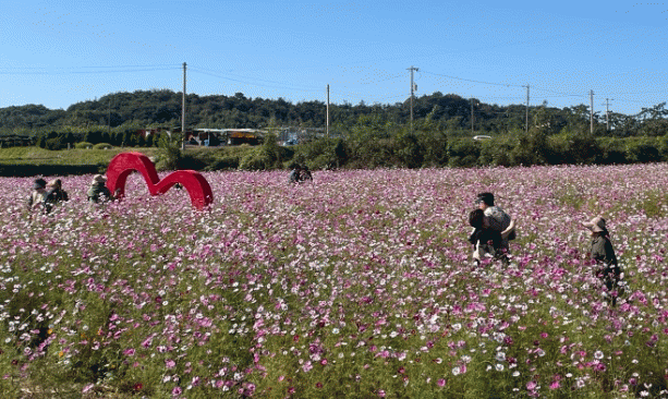 코스모스 꽃길 사이로는 산책로와 더불어 ‘하트 포토존’, ‘스즈메의 문’ 등이 있어 청명한 가을 하늘 아래 산책과 추억 사진을 남길 수 있다.