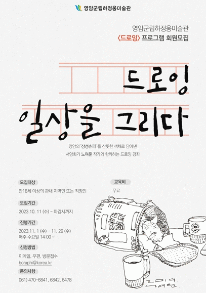 교육에 대한 자세한 내용은 영암군립하정웅미술관 홈페이지에서 볼 수 있고, 안내는 전화로 한다.