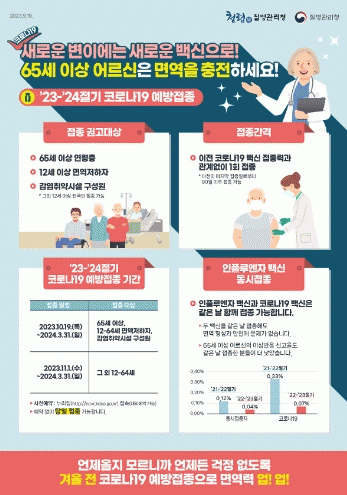 코로나19 백신 접종은 시간 경과에 따른 면역감소로 인해 주기적 접종이 필요하며 이번 접종은 신규 변이에 대응해 새롭게 개발된 XBB.1.5 단가 백신으로 접종을 진행한다.