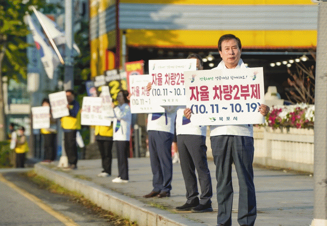 시는 전국체전 기간 교통혼잡이 발생될 경우를 대비해 지난 11일부터 19일까지 시민자율 차량 홀·짝제(2부제)를 시행했는데, 이 기간동안 시민들의 자발적이고 적극적인 동참이 이루어졌다.