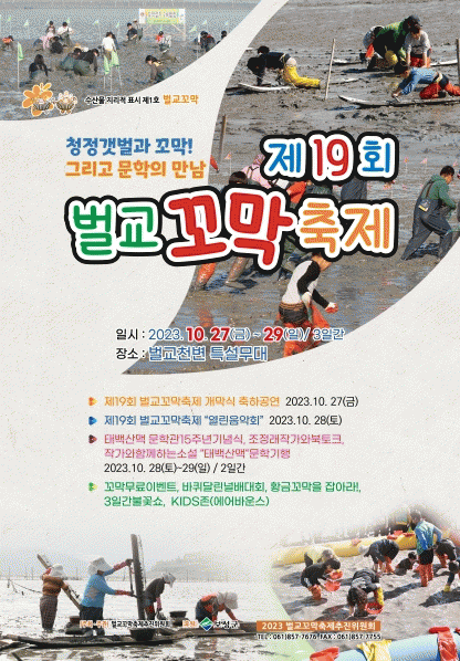 대한민국을 대표하는 벌교꼬막을 제대로 즐길 수 있는 제19회 벌교꼬막축제가 오는 10월 27일부터 29일까지 3일간 벌교읍 천변 일원에서 개최된다. ‘청정 갯벌과 꼬막! 그리고 문학의 만남’이라는 주제로 온 가족이 함께 즐길 수 있는 참여형 축제의 장을 마련해 관광객의 발길을 사로잡을 예정이다.