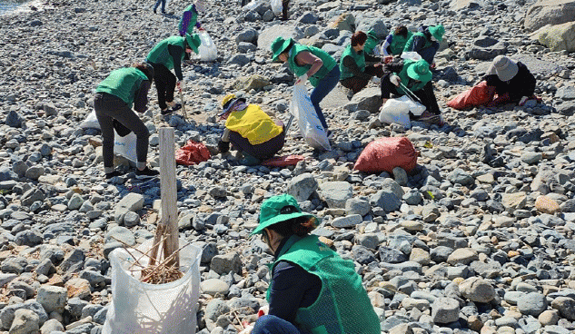 회원들은 이날 바다에 버려진 폐어구와 폐스티로폼, 생활 쓰레기 등을 수거하며 구슬땀을 흘렸다.