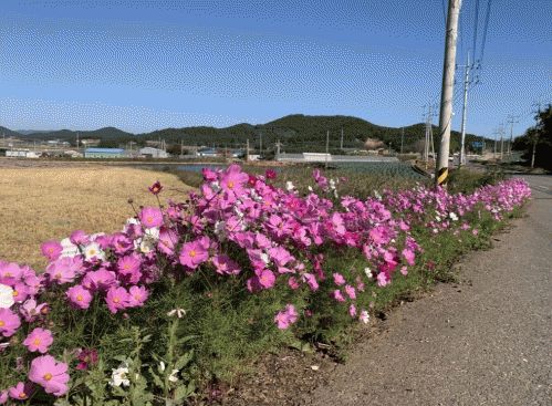 해제면은 꽃길 조성사업의 하나로 해제 초입인 물바위에서부터 면소재지까지 약 3.7km 구간에 코스모스 씨앗을 파종하고 잡초제거 등의 관리를 통해 코스모스 꽃길을 조성했다.