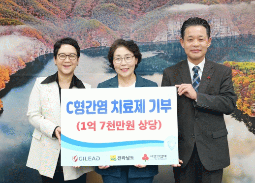 이날 길리어드 사이언스 코리아는 전남도의 C형간염 퇴치 시범사업으로 발굴한 확진자 중 저소득층(중위소득 100%이내)의 치료비 부담을 해소하고, 국내 C형간염 퇴치에 기여하기 위해 사회복지공동모금회를 통해 치료제를 기부했다.