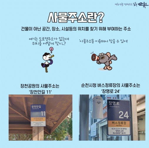 순천시 토지정보과 관계자는 “이번 서비스 도입을 통해 공공시설물에 대해 사물주소를 활용하면 누구나 쉽게 정확하고 신속하게 위치를 찾을 수 있다”라며 “공공시설물의 고장, 불편 신고 및 긴급신고 시 사물주소를 어디에서나 편리하게 활용하기 바란다”라고 전했다.