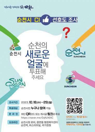 조사 참여는 온라인은 시 누리집에 게시된 네이버 링크 접속 또는 QR코드를 통해 가능하며 오프라인은 24개 읍면동 행정복지센터, 박람회장, 버스터미널, 순천역, 시청 로비에서도 직접 투표할 수 있다.