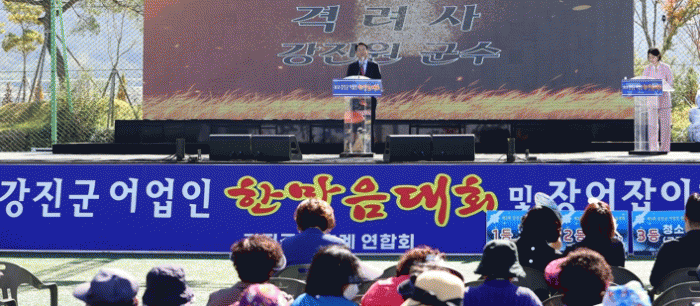 강진군 어촌계연합회가 주관한 이번 대회는 강진원 강진군수를 비롯해 김보미 강진군의회 의장, 김승남 국회의원의 배우자 김선미 여사, 전서현 전남도의원 등 각계 인사와 어촌계연합회원 등 어업인 300여 명이 참석했다.