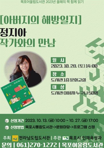 시 관계자는 "2023년 전라남도 올해의 책이자 지난해부터 큰 인기를 받고 있는 “아버지의 해방일지”저자와의 만남을 통해 지역민들의 독서 의욕을 고취시키고 앞으로도 독서문화 확산을 위해 지속적으로 프로그램을 발굴하겠다”고 말했다.