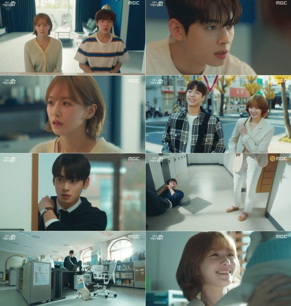 18일(어제) 밤 9시 방송된 MBC 수요드라마 ‘오늘도 사랑스럽개’(연출 김대웅/ 극본 백인아/ 제작 그룹에이트, 판타지오/ 제작 투자 에이앤이 코리아) 3회는 서로의 비밀을 지켜주면서 조금씩 가까워진 진서원(차은우 분)과 한해나(박규영 분)의 모습이 안방극장에 간질간질한 설렘을 안겼다.