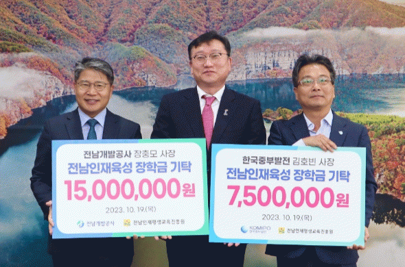 명창환 부지사는 “장학기금을 기탁해주신 전남개발공사와 한국중부발전에 감사하다”며 “지역의 인재가 꿈과 목표를 펼치고 성장하도록 소중히 쓰겠다”고 말했다.