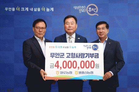 김산 무안군수는 “월출산농협 임직원들과 고향사랑기부 릴레이 캠페인에 참여해주신 모든 분들께 진심으로 감사드린다”며 “무안군 고향사랑기부제의 성공을 응원해주시는 마음에 더 큰 무안 건설, 행복무안 실현으로 반드시 보답하도록 하겠다”고 말했다.