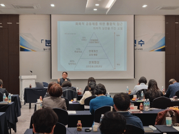 연수는 △ 분쟁조정 시 갈등 전환의 이해 및 유형 분석 △ 분쟁조정자의 의사소통 훈련, 회복적 대화법 △ 분쟁 조정 단계별 훈련 등으로 운영된다.