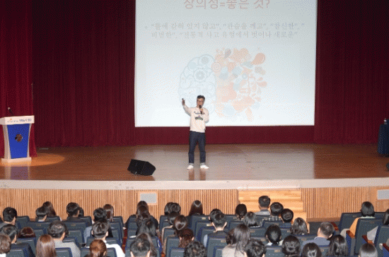 김영하 작가는 이날 주제특강에서 간단한 연습을 통한 ‘창의성 키우기’부터 ‘예술과 창의성’, ‘스토리텔링의 연관성’ 등에 대한 일상 속 사례를 곁들인 강의로 직원들의 큰 호응을 얻었다.