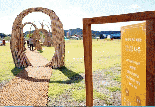 전통 탈곡 방식의 벼 수확과 도시농업 모종 심기, 한과·짚배 만들기 등 농경문화 체험부스도 인기를 끌고 있다. 농업페스타 부스 너머에는 나주의 다양한 맛을 느낄 수 있는 ‘영산강 카페테리아’와 황톳길 맨발 걷기 체험존이 운영된다.