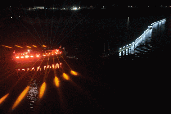 54척의 조운선은 과거 개경과 한양의 특산물을 가득 싣고 만선의 기쁨을 누리며 나주로 도착하는 모습을 재현했다. 장판처럼 고요한 영산강을 미끄러지듯 가로지르는 조운선 위로 15분간 각양각색의 폭죽이 터지며 역대급 장관을 만들어 탄성을 자아내게 했다.