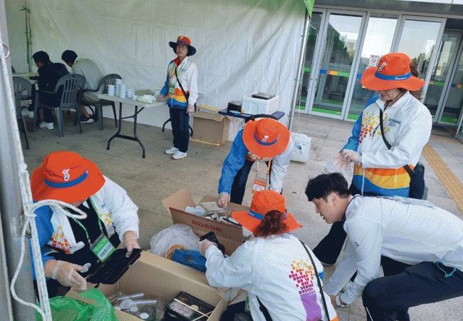 지난 5~6월에 모집·선발된 이들은 각각 리더교육과 기본교육을 받으며 자원봉사활동 준비를 마치고, 먹는 물 지원, 경기장 환경정화, 주차 안내 등 다양한 분야에 배치됐다.
