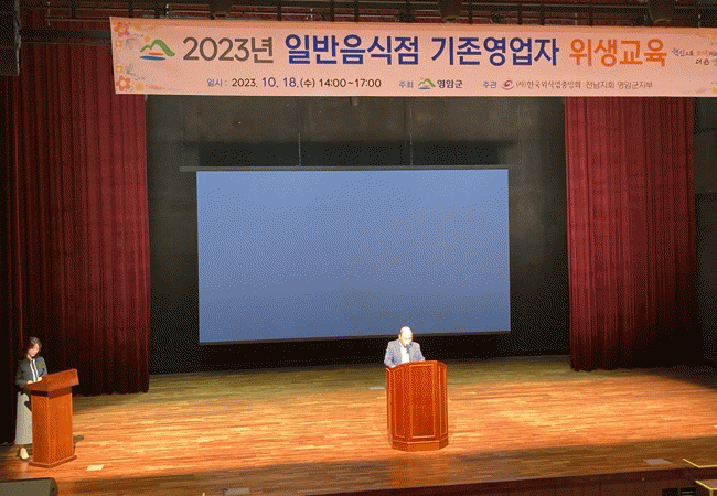 아울러 영암군 식품위생 정책 방향과 영암대표음식점 100선 소개, 식품위생법을 해설한 ▲식품접객업 영업자 준수사항 ▲식중독 발생 주요 사례 및 예방 ▲음식점 위생등급제 등도 이어졌다.
