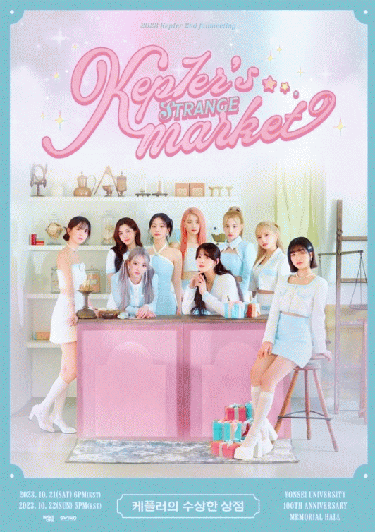 케플러의 ‘2023 Kep1er 2nd FAN MEETING 〈Kep1er’s Strange Market : 케플러의 수상한 상점〉’은 21일과 22일 양일간 연세대학교 백주년기념관 콘서트홀에서 개최된다