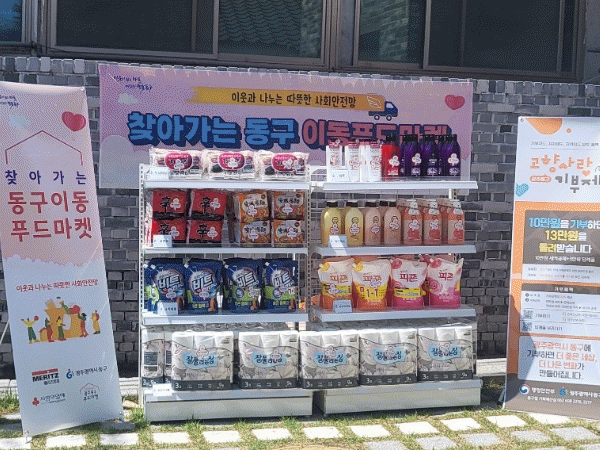 한편 지난해 6월 계림동에 개소한 ‘동구 푸드마켓’은 식품과 생활필수품을 후원받아 돌봄 이웃에게 전달하는 공간으로, 푸드마켓에 진열된 품목을 직접 선택해 무료로 가져가는 이용자 중심 나눔 장터이다. (사)자비신행회가 협력해 구축한 ‘나눔 반찬 지원시스템’으로 전국 최초로 결식 우려 가구에 주 1회 반찬 지원 서비스도 운영 중이다.