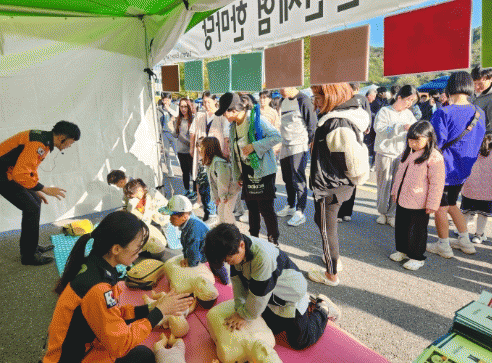 체험장은 ▲심폐소생술 및 자동심장충격기 교육 ▲하임리히법 교육 ▲소화기 사용법 및 연기소화기 체험 ▲119신고 방법 등 화재 예방 교육 ▲교육책자 및 소방기념품 제공 등의 다양한 프로그램으로 구성됐다.