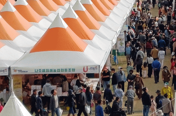 축제 현장에서 판매 중인 나주 농·축산물 가공품과 카페테리아 음식 부스는 20일 개막 이후 사흘간 순매출 1억3000여만원을 돌파한 것으로 집계됐다.