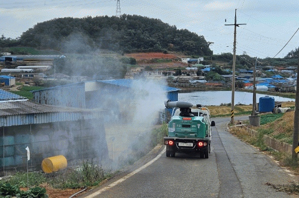 럼피스킨병은 모기, 파리, 진드기 등 흡혈곤충에 의해 주로 전파되므로 농장 주변 연무소독을 통해 모기 등 해충방제를 추진하고 있다. 농장 내부는 농장주가 집중 방제를 실시하고 농장 주변은 보건부서와 협조해 연무소독을 실시하고 있다.