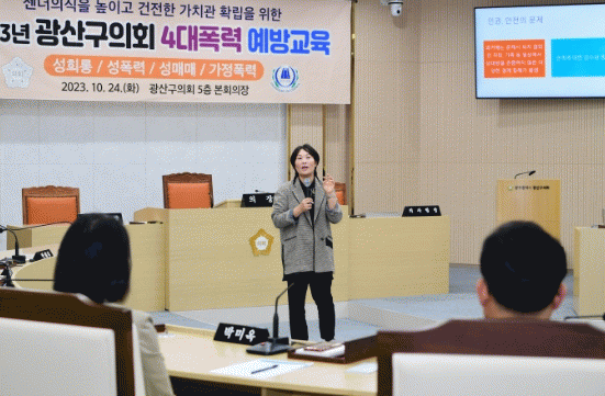 광산구의회는 의정활동의 전문성을 강화하기 위해 다양한 분야의 정기 교육을 추진하여 실시해 왔으며, 이날 교육은 안전한 사회 환경 조성에 필요한 올바른 젠더 감수성 함양과 건전한 가치관 확립을 위해 마련됐다.