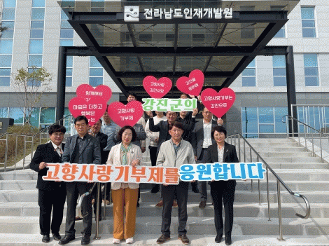 전라남도 인재개발원 직원 일동은 지난 10월 10일, 강진 고향사랑기부제 활성화와 건전한 기부문화 확산을 위해 강진 고향사랑기부제 릴레이 응원에 동참했다.