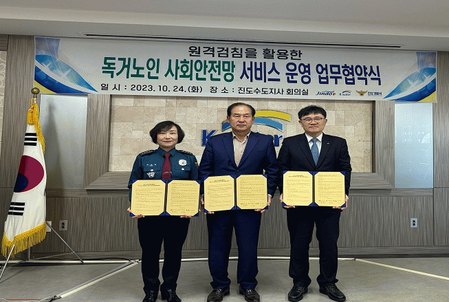 위 업무협약은 진도군 관내 독거노인 184가구 대상 원격 수도량 검침 서비스 도입으로 실시간 상수도 사용량 확인하여 위기징후 발생시 신속한 후속조치를 할 수 있도록 진도경찰-진도군-한국수자원공사가 사회안전망을 구축하게 됐다.
