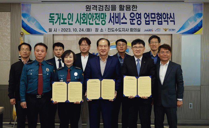 이날 협약식은 진도군과 진도경찰서, 진도수도지사 3개 기관이 참여해 원격검침을 활용한 독거노인 사회안전망 서비스 운영 등을 구축하기 위해 마련됐다.