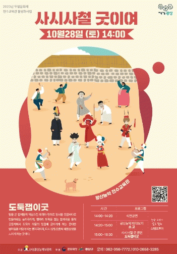 이달 ‘사시사철 굿이여’의 세부 프로그램으로 △광산농악 데다보기(소고) △농악 그것이 알고 싶다(도장 찍기 여행)도 운영한다. 도장 찍기 여행은 수수께끼 풀이, 깃발 싸움, 도둑잽이 등에 참여해 할 수 있다. 모든 도장을 모으면 소정의 선물을 증정한다.