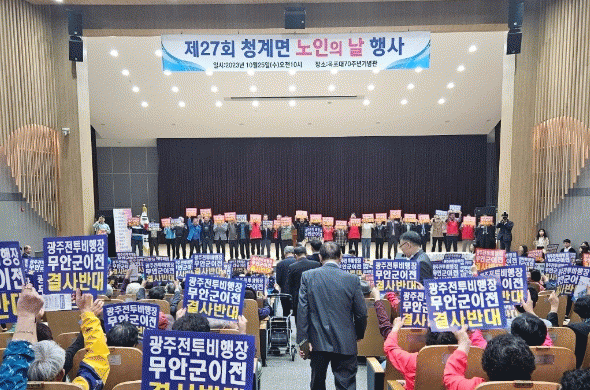 또한 기념식 전 마을 이장 등 주민들이 참여하는 무안 군 공항 이전 반대 퍼포먼스를 펼쳐 군 공항 이전에 대한 반대 의지를 분명히 표명했으며, 기념식에서는 모범노인과 노인복지 기여자로 정래영(청계면 구로길)씨와 함영배(청계면 청계중앙길)씨가 군수표창을 수상했다.